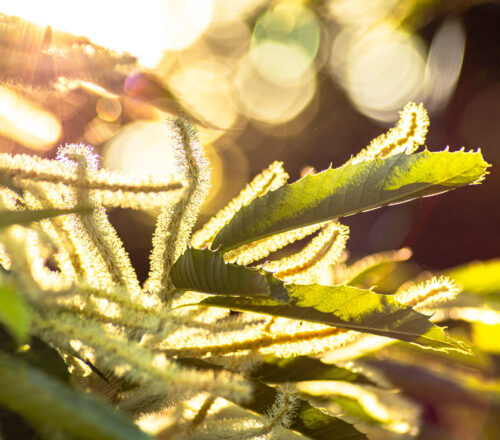 La châtaigneraie et les récoltes sont conduites et certifiées en Agriculture Biologique : nettoyage des allées par la herse et les brebis, pose de filets, récolte et tri à l’aide d’un aspirateur et d’une calibreuse.