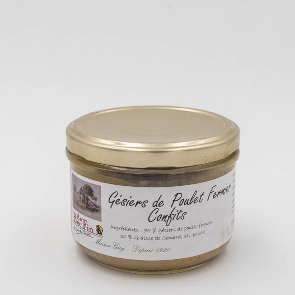Gésiers de poulets fermiers salés et confit dans la graisse de canard