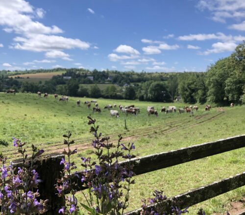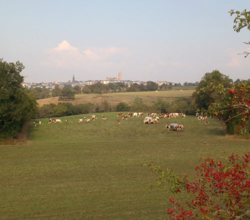 Installés à Sainte-Radegonde, nous élevons un troupeau de vaches montbéliardes. A la belle saison, elles profitent de l’herbe des prairies autour de la ferme, et l’hiver du foin et des céréales composent leur alimentation.