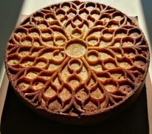 Gâteau de Rodez entier ou en parts, fabriqué à Rodez avec des produits aveyronnais : pommes de Pruines (maison Pouget), crème de marrons de saint Hippolyte (La chataigneraie), noisettes de flagnac (noisettes d’Olt) et farine de rignac (Moulin Calvet)