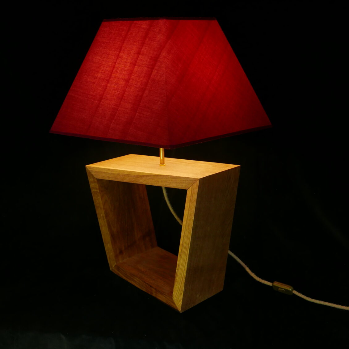 Elle est constituée d’un pied de chêne massif à la forme originale et d’un abat jour traditionnel.