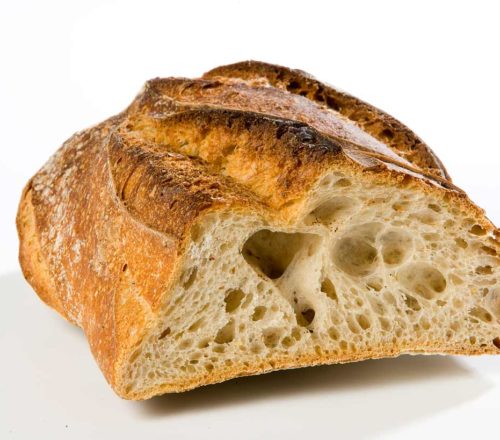 Les ingrédients sont pétris puis la pâte est mise à pointer en cuve. La pâte est façonnée et mise à pousser puis cuite dans nos fours par nos boulangers.
