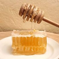 est faite avec un extracteur centrifuge, ou pressé à froid avec un extracteur à main ou découpé directement sur le cadre de hausse dont la cire est produite à 100% par mes abeilles.