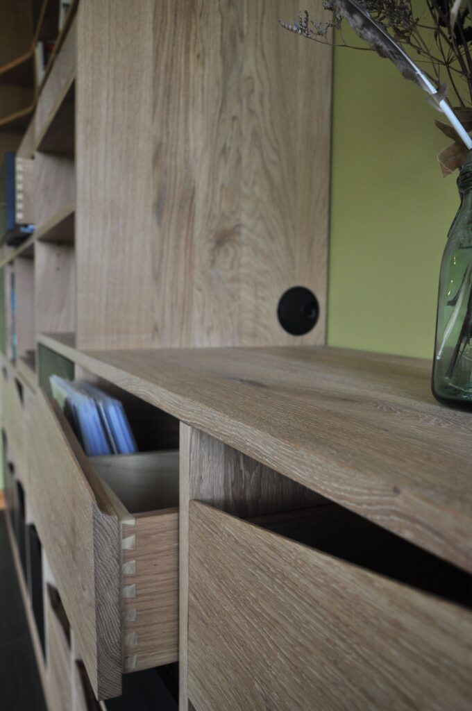 Je privilégie l’utilisation de bois massif dans le cadre de mes créations de mobilier et d’agencements intérieurs, ainsi que la mise en œuvre de produits de finition écologiques, à base d’huiles végétales.