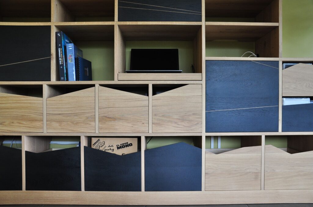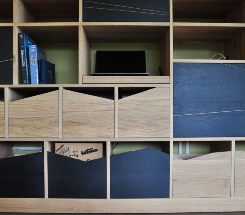 Fabrication de mobilier sur mesure dans le cadre de projets d’agencements intérieurs pour le particulier ou le professionnel.