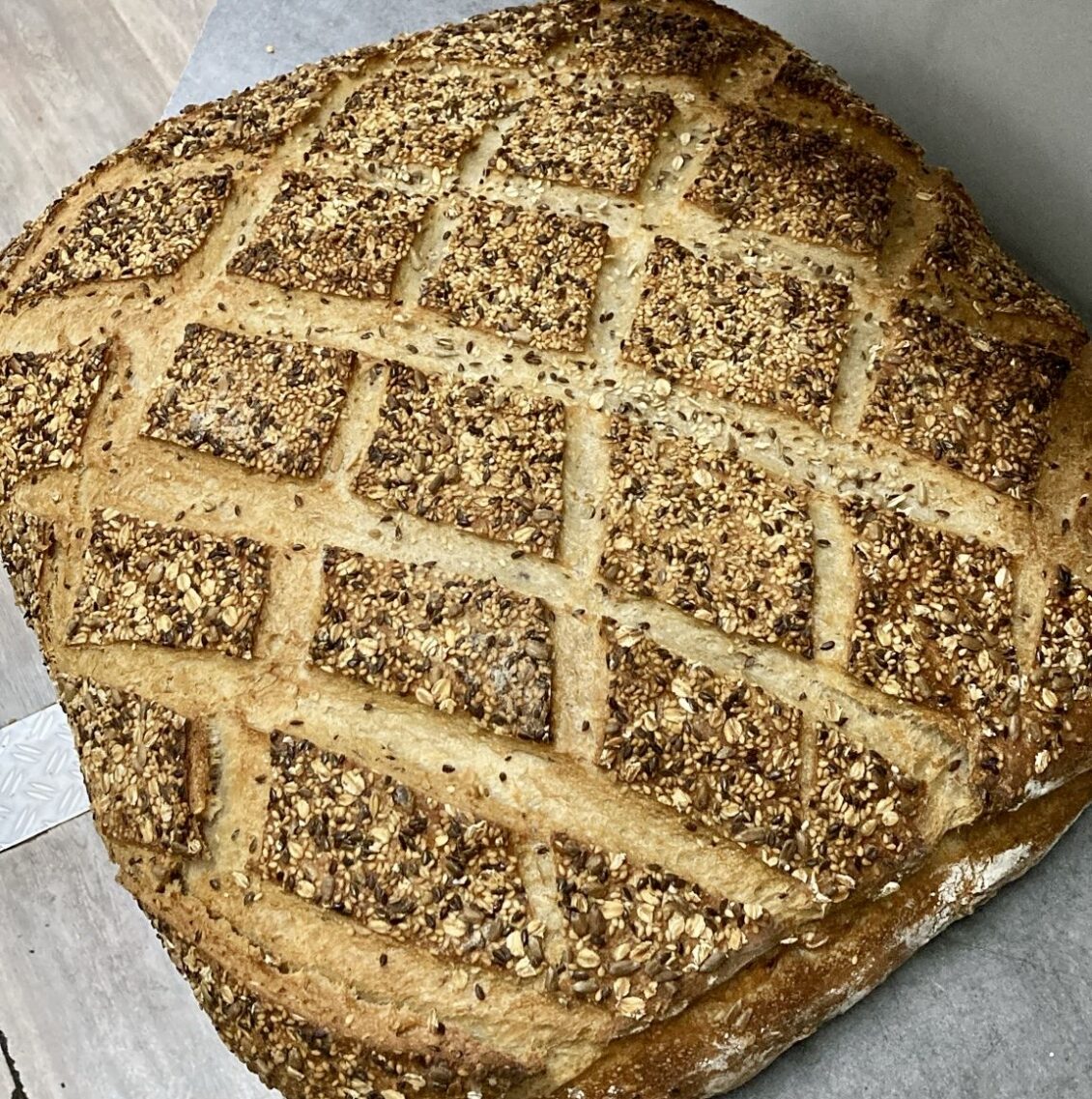 Farine label rouge, multigraines (lin, millet, tournesol, sésame), eau, levain naturel maison