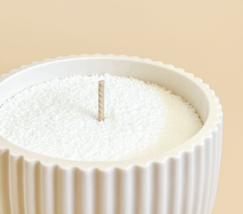 Cire végétale : 100% naturelle, végan, biodégradable et non toxique. Issue de l’industrie cosmétique, elle constitue une alternative écologique à la paraffine d’origine pétrolière.