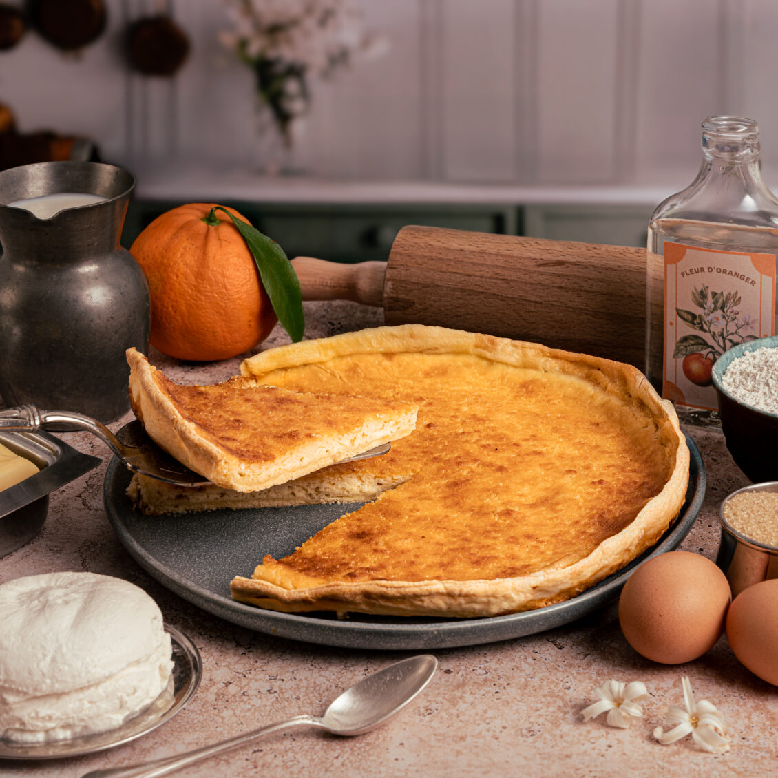 Sucre de canne BIO, Brousse de brebis BIO, Blanc d’œuf BIO, Jaune d’œuf BIO, Gelamix, Arôme naturel fleur d’oranger BIO