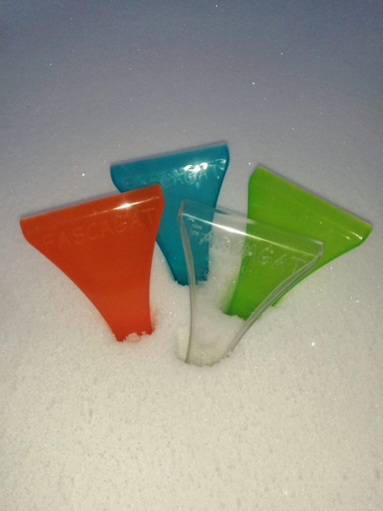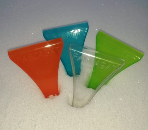 Raclette anti-givre ergonomique en Polypropylène, dim 20 cm de haut, 11 cm de large et 1.5 cm d’épaisseur.