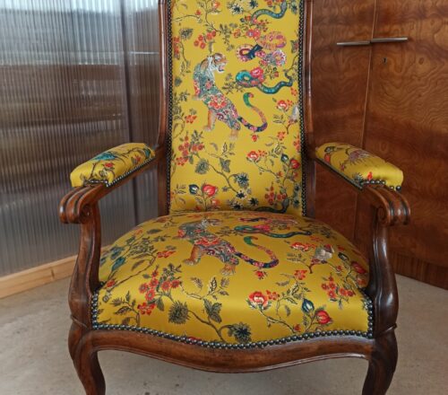 Je réalise la rénovation et la restauration traditionnelle pour les fauteuils, chaises, banquettes, têtes de lit et paravent dans le respect de la tradition et de l’histoire du mobilier. J’utilise des matériaux traditionnels : crin végétal, toile de jute, ressorts. Les choix du tissu et des finitions se font en concertation pour être adaptés à vos goûts et à vos besoins. Je propose également de confectionner sur mesure une composition textile avec une sélection minutieuse des matières et des couleurs.