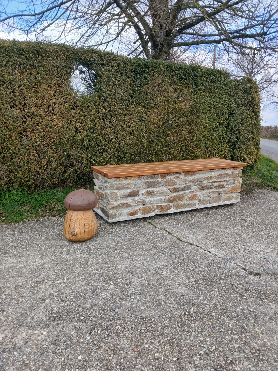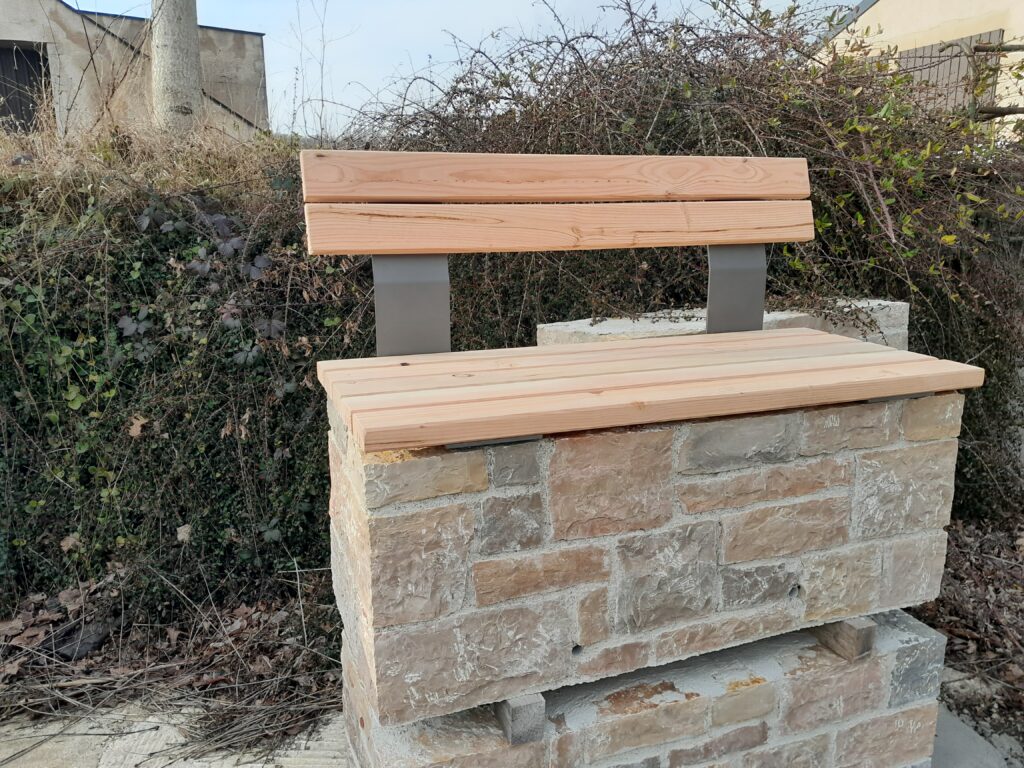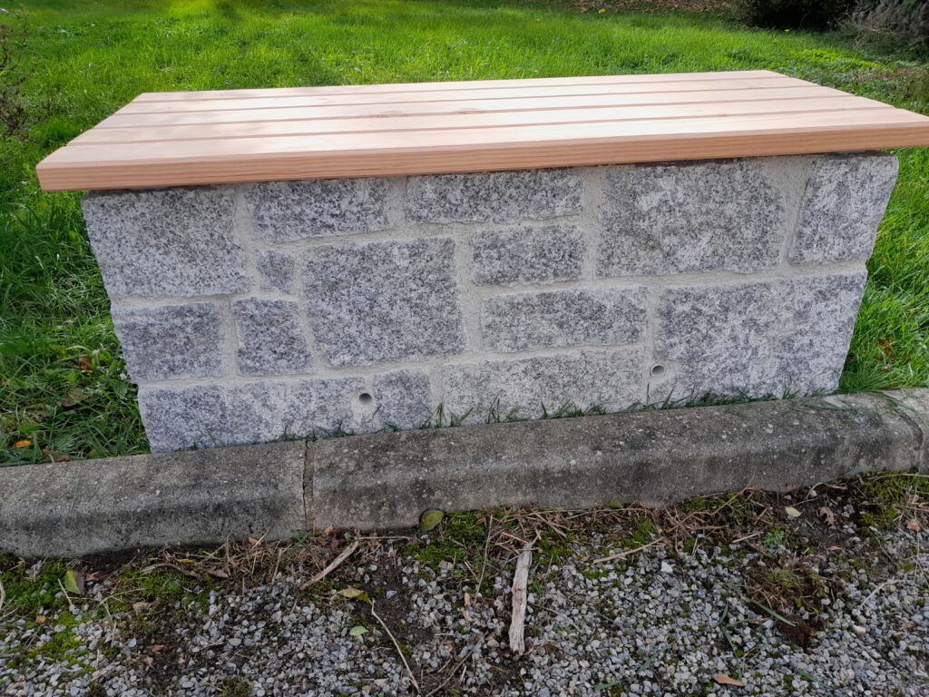 Bancs de repos en pierre et bois transportables et déplaçables. Ils sont réalisés avec de la pierre naturelle et bâtis selon les méthodes ancestrales. Manutention avec des élingues de levage. produit breveté.