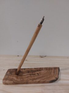 Création de stylos en bois local, fabriqué à partir de mon tour à bois et ma presse pour l’assemblage des mécanismes.